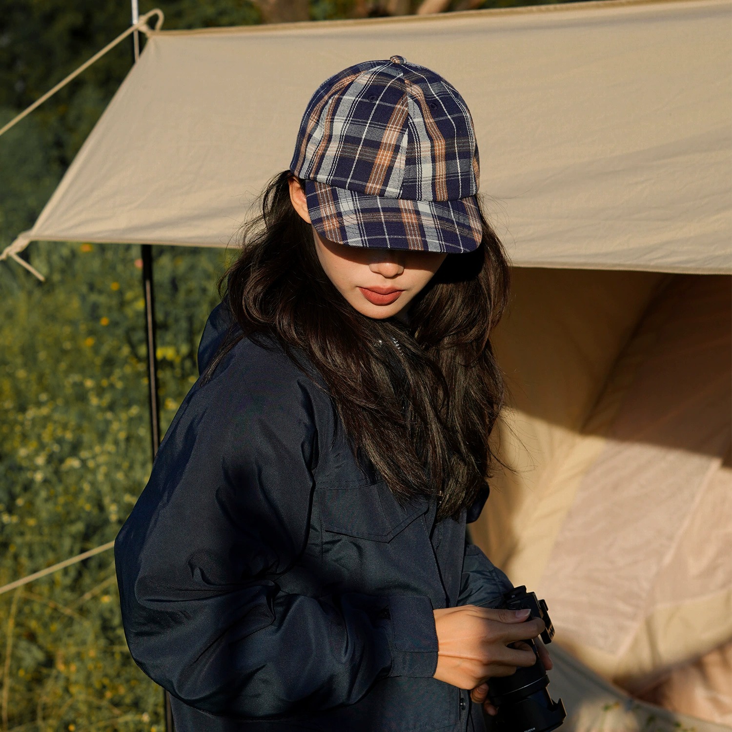 Style: Baseball cap, soft top, color-block plaid, autumn/winter